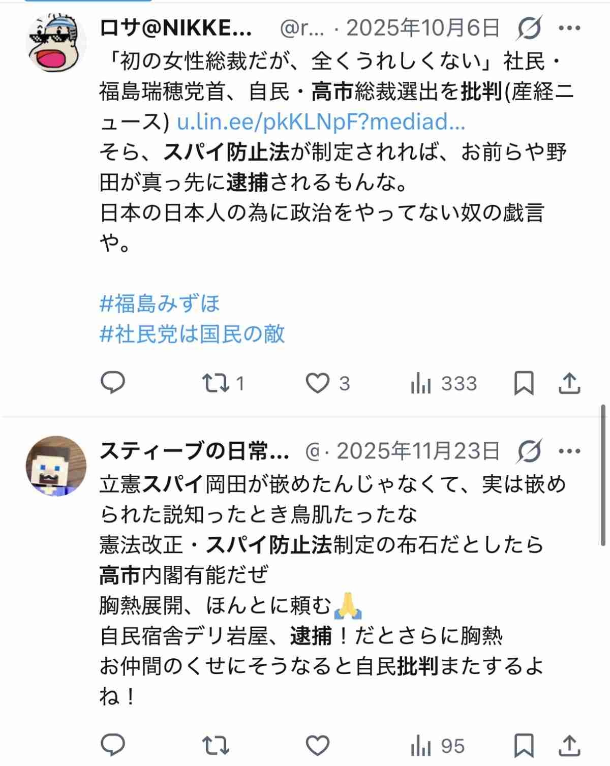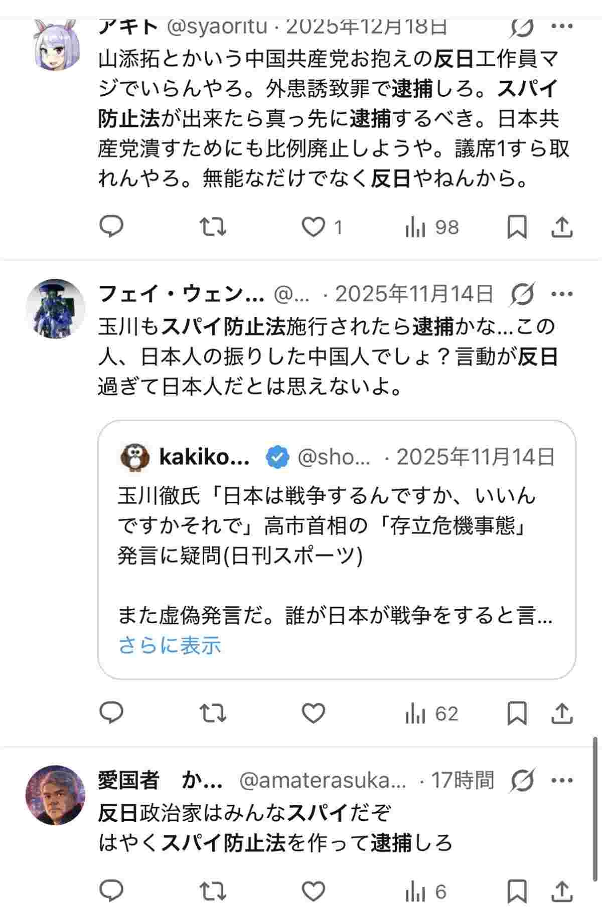 政権批判はスパイ防止法で逮捕すべきと選挙前に言ってた模様