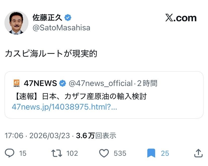 日本が中央アジアのカザフスタン産原油の輸入を検討していることが23日、関係者への取材で分かった。INPEXが権益を保有している。原油の9割超を依存する中東産はイラン情勢悪化で輸入が滞る恐れがあり、代替先を確保する狙