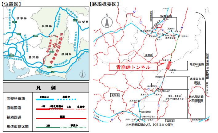 青崩峠トンネルは、長野県飯田市南信濃と静岡県浜松市水窪を結ぶ全長4998メートル。