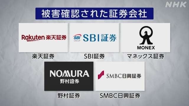 その後、NHKの取材に対し、野村証券やSBI証券が、同様の被害が確認されていると明らかにしたほか、SMBC日興証券とマネックス証券もホームページで被害が確認されたと公表しました。