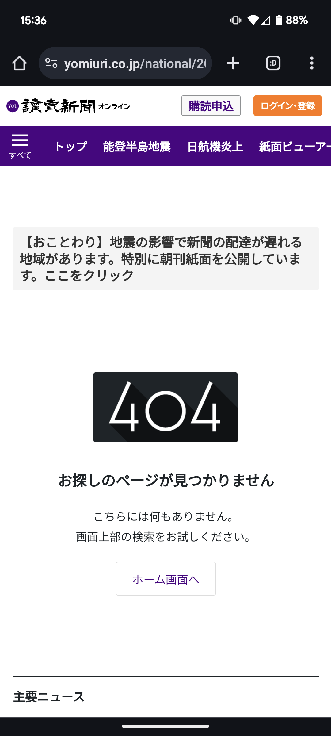 読売新聞「石川で自販機破壊されて避難所がパニックに!」 →デマだったとバレて記事消し