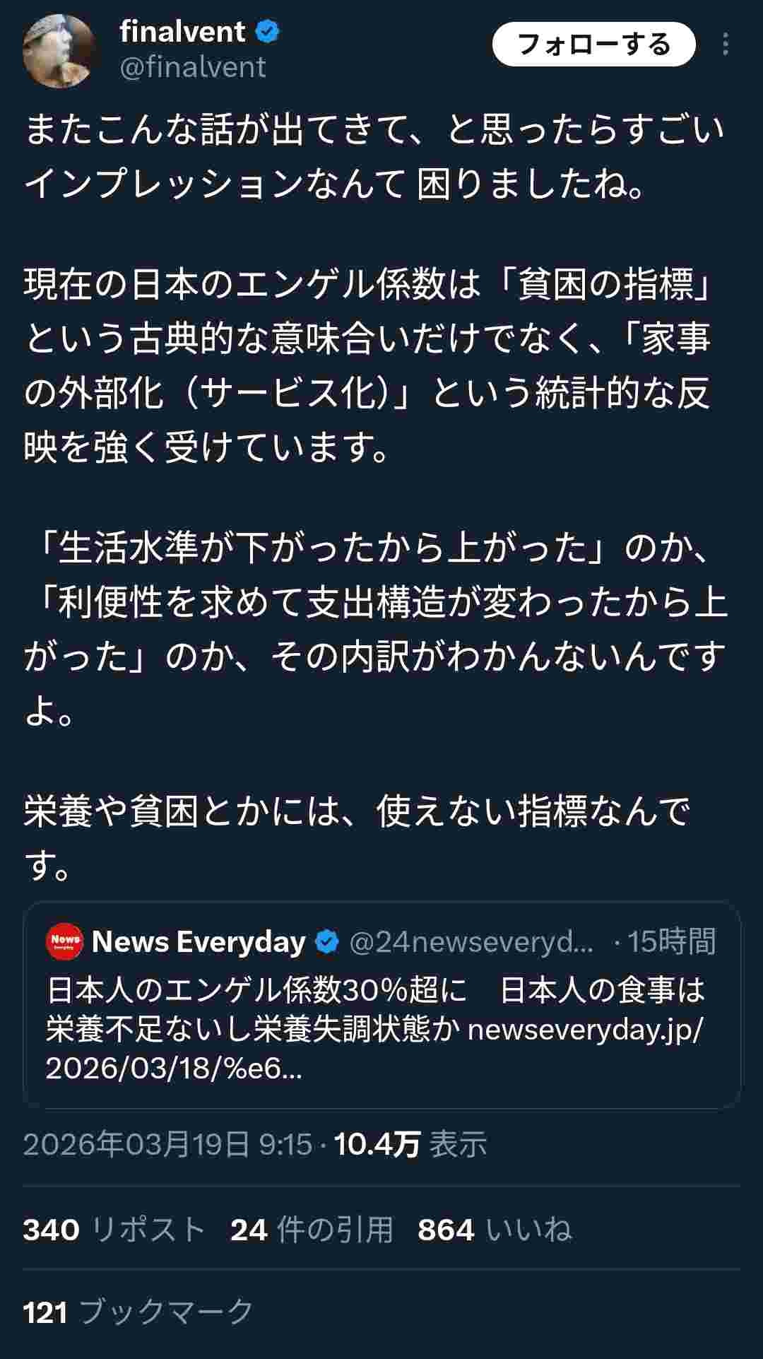 そもそも可処分所得が上がっていない事とエンゲル係数が上がった事を合わせればわかるよね