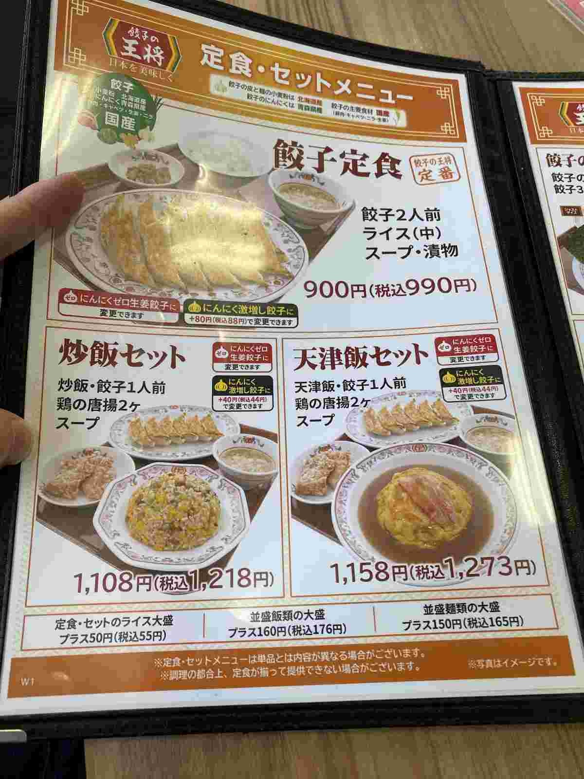 今じゃ王将の餃子定食1000円すんのかよ~