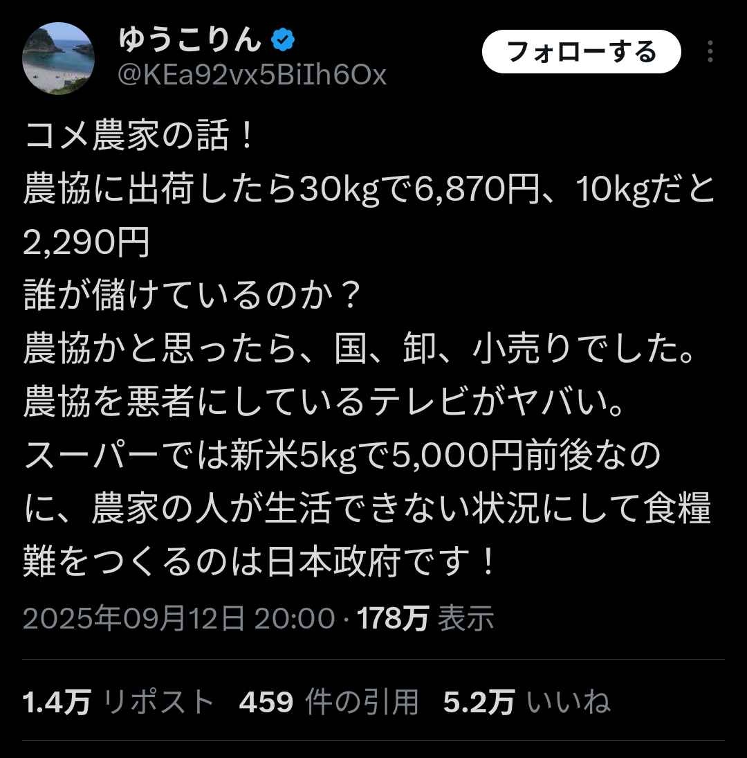 去年の利益、昨年の数倍になってるJAが罪なしなわけない