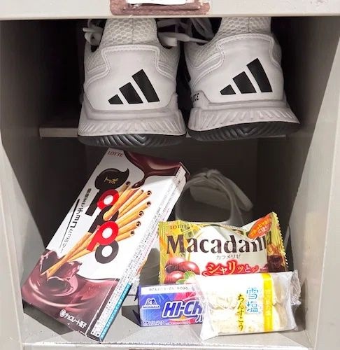 知華の下駄箱に友達が置いてくれたお土産とお菓子