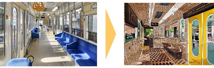 リニューアル車両は、「楽しい都電」がコンセプト。外観は昔の都電を彷彿させる山吹色とし、車内は木材を豊富に活用としたものに。