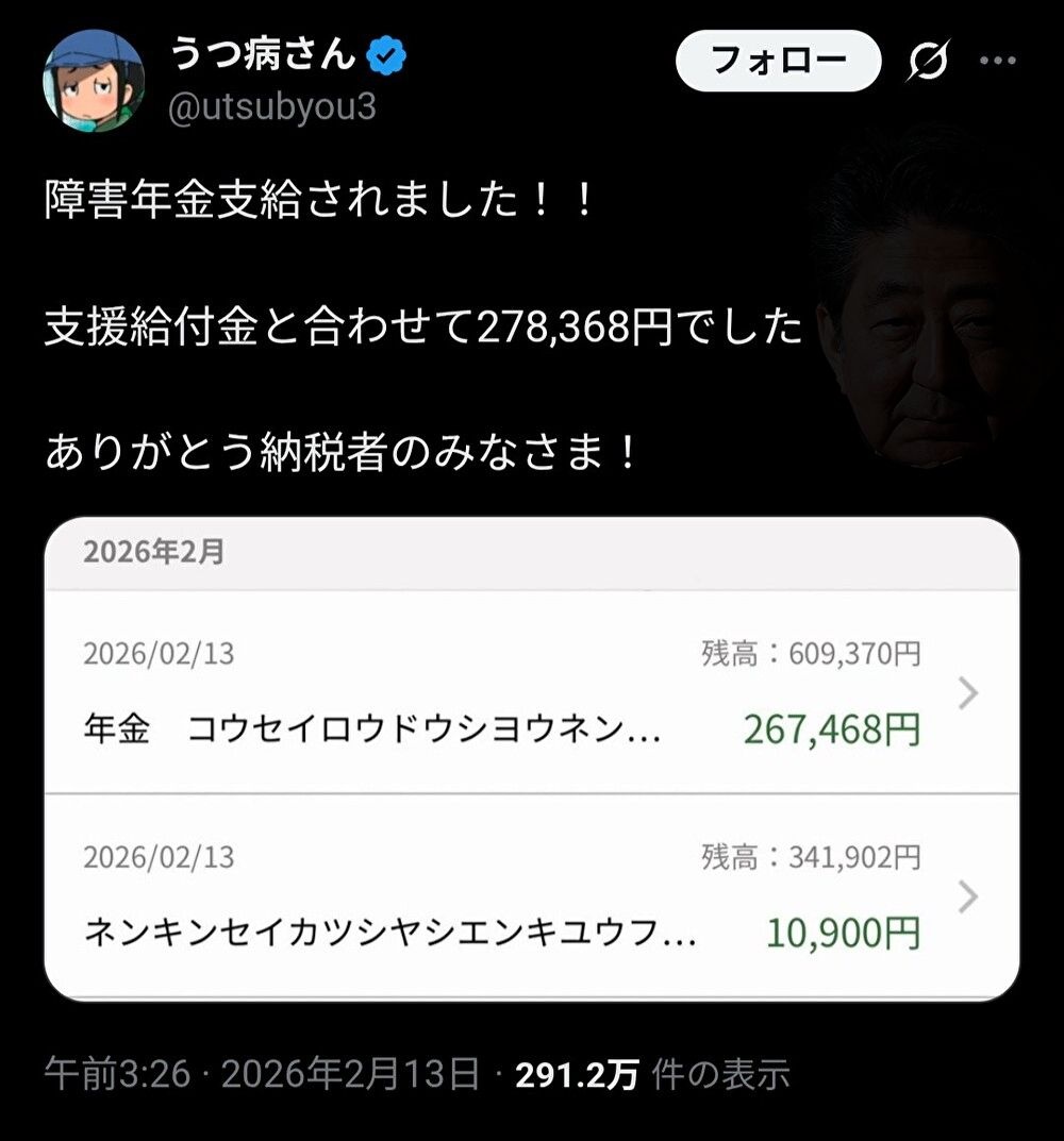 俺も初めての障害年金が来月13日にくる!!