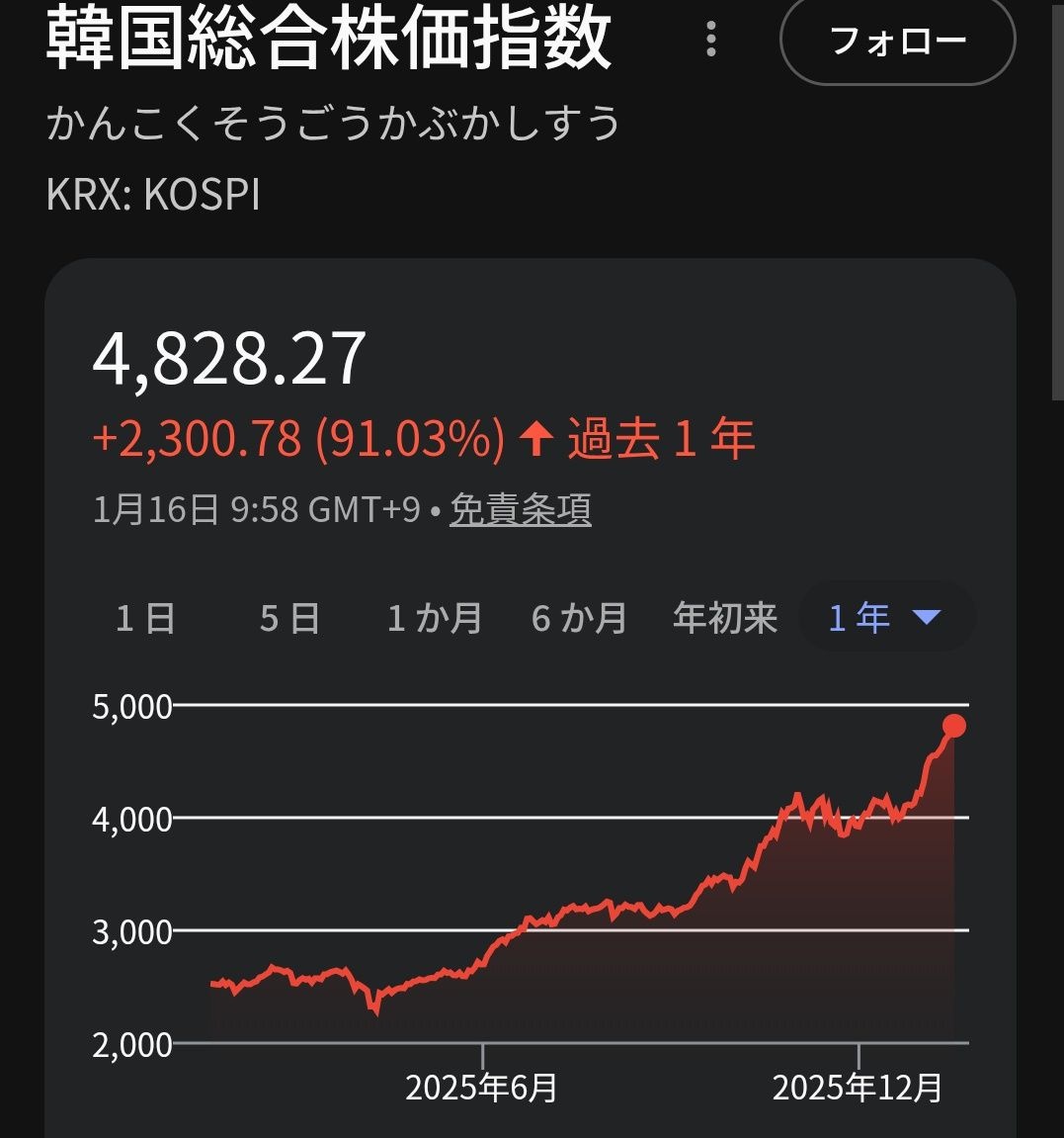 もっと言えば韓国人の中でも産業偏りまくってる自国の株買いたくないやつはよく日本株買ったりもしてる エニカラーとか割と人気