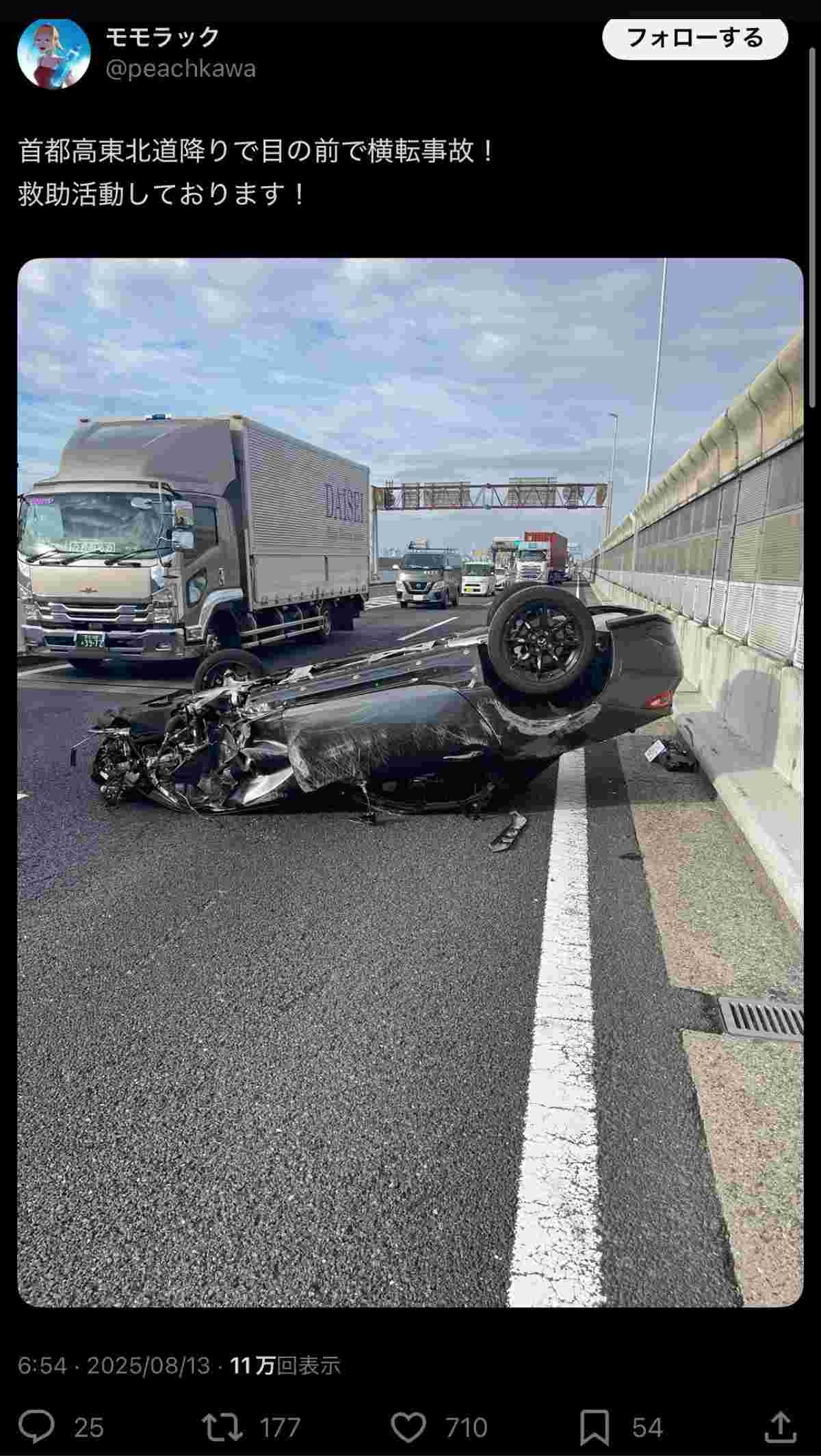 首都高でマツダ・ロードスターが横転する事故