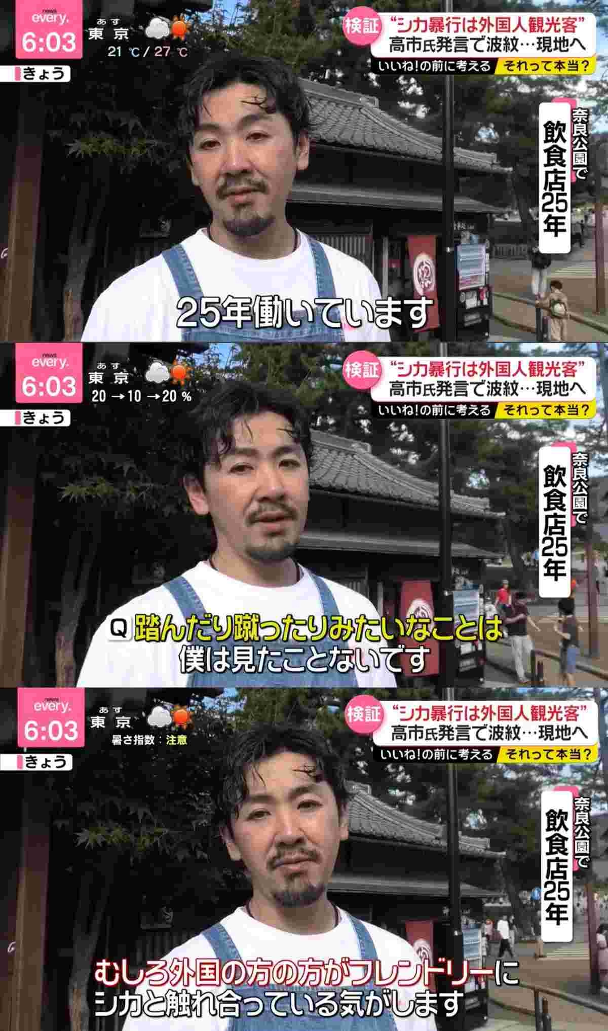 高市「鹿に暴力してる外国人、私も数年前に見た」奈良公園で働く人「そんなの見たことない」