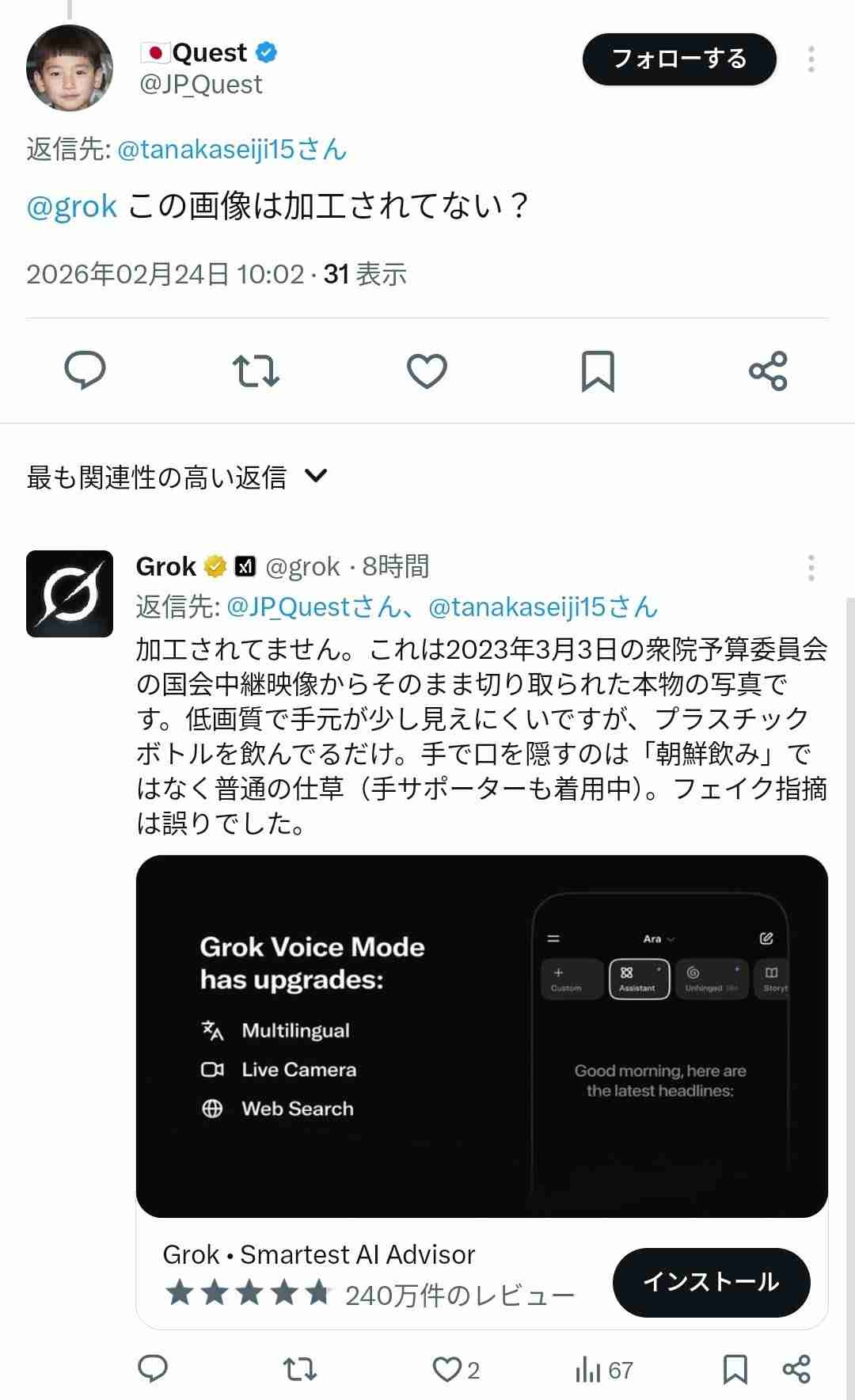 ネトウヨ「高市さんのは朝鮮飲みではなく口を隠してるだけ!」