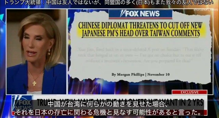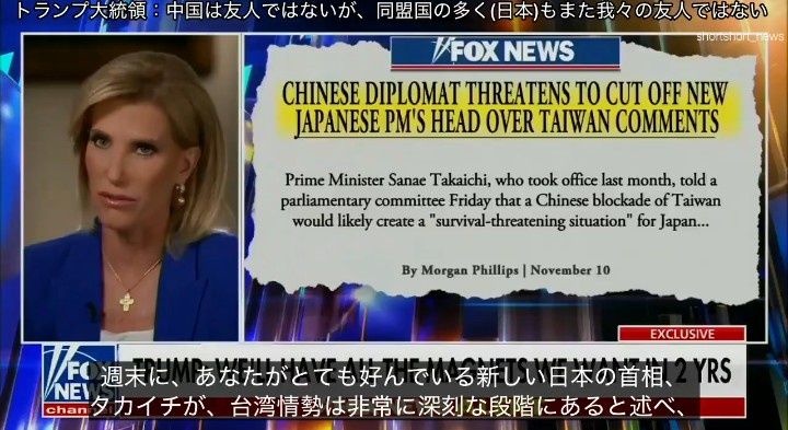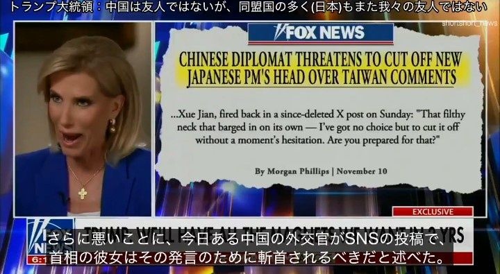 INGRAHAM:ある中国の外交官が「日本の首相は斬首されるべきだ」と言った。彼ら(中国の人々)は(我々の)友人ではないよね?