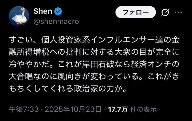 去年の冬頃に国民民主がチラっと課税強化の話題出して「増税だと!?ふざけんな!!」ってプチ炎上しかけたw