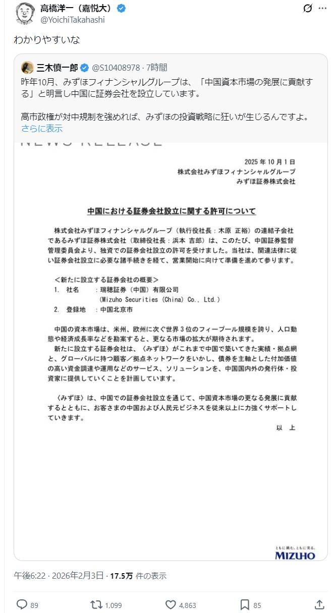 高市がこれ見てさらに変な失言するんじゃねえの?