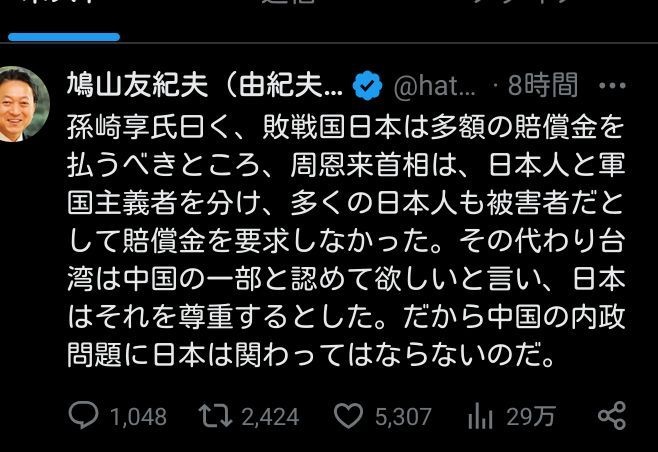 これ100万回聞いたけど中華民国と話つけてんだから元から払う筋合いないよな