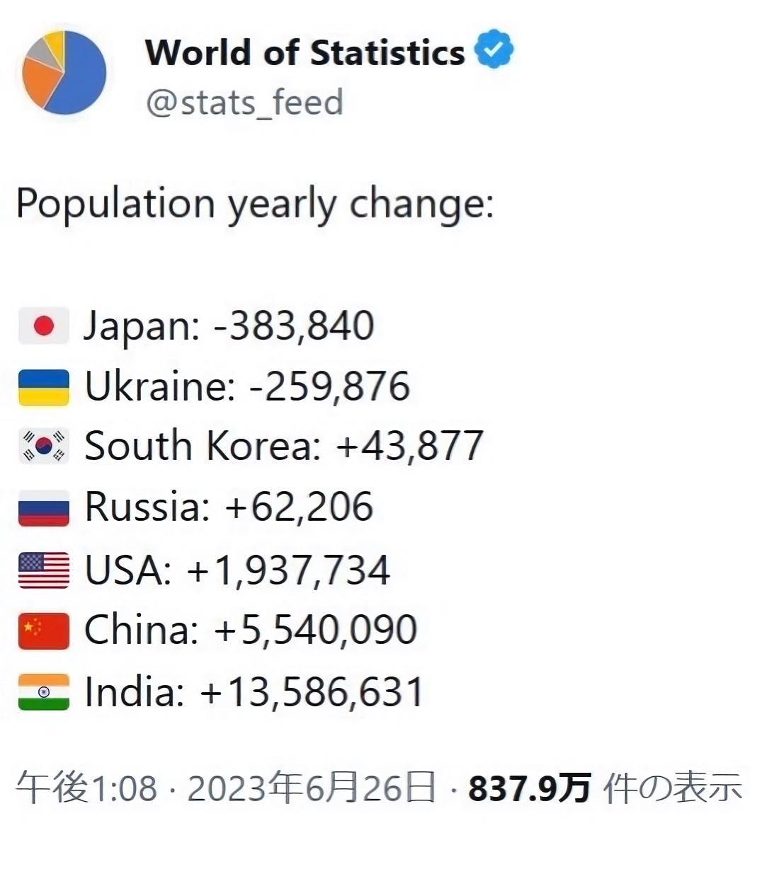 ネトウヨ的には韓国の人口が増えてることが納得いかんらしい