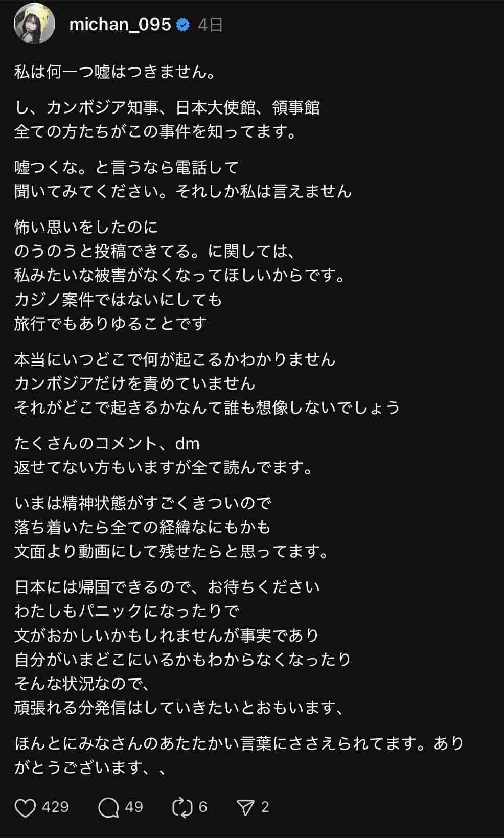 また他の日本男子もドライバー役などでカンボジアに連れて行かれたまま消息不明になってる