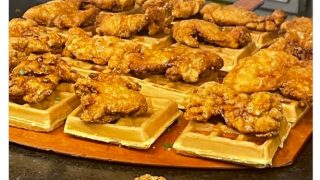 嫌儲 ほいよ、これがアメリカ人の定番の朝食「チキンワッフル(メープルシロップつき)」