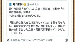 嫌儲 【悲報高市】中国「我らが台湾侵攻しても日本が邪魔しないことの言質を取ってくるアル」 岡田「仰せの通りに」