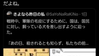 嫌儲 日帝、兵隊の毛皮にするからと飼い犬を飼い主に要求し、目の前で締め56す🐶しかも毛皮は大して使われず