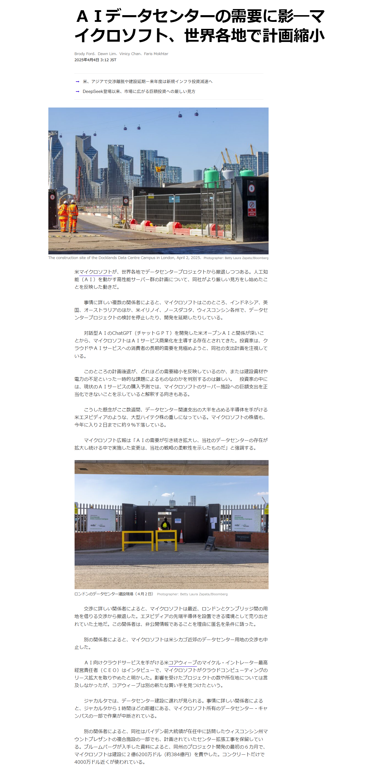 AIバブル崩壊へ、マイクロソフト世界各地のAIデータセンター続々撤退、単にネット検索してエ口絵のコラしかできなことがバレるw