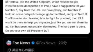 VIP トランプ大統領「(みんな協力してくれないしもういいわ)米国は助けない。自分で石油を手に入れろ」とSNSに投稿