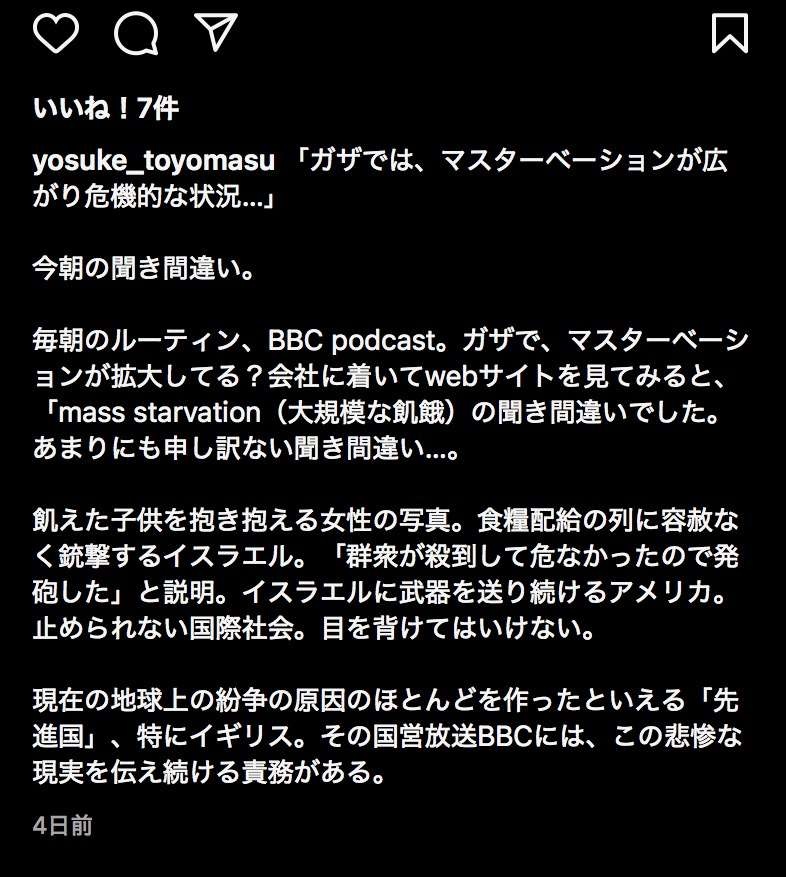 BBC「mass starvation is spreading in gaza」日本人「ガザでマスターベーションが広がっている!?」ジャップ
