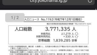 嫌儲 横浜市の人口、1か月で1200人減る。異常な減り方