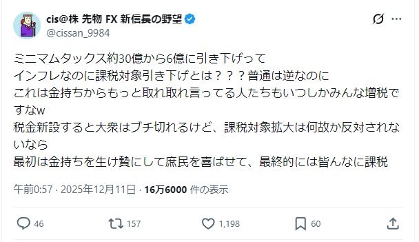 cis「富裕層課税強化?普通は逆なのに、最初は金持ちを生け贄にして庶民を喜ばせて、最終的には皆んなに課税