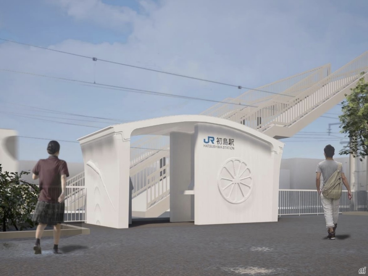 駅舎の広さは10平方メートル弱で、建物の基礎部分を含めた外形を最新の3Dプリンターで出力する。出力したパーツには鉄筋の設置やコンクリート充填などの後処理を施す。