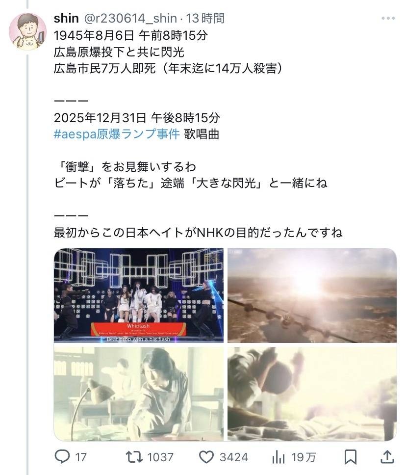NHK、aespaの紅白出演時間を8時15分にして意図的に原爆投下時刻に重ねたことが判明して炎上