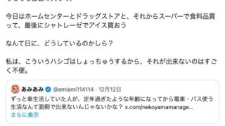 嫌儲 女さん「車を持ってない東京や大阪の男性ってホームセンターとスーパーと不二家を1日で回ろうって日はどうすんの?一一家に帰るの?