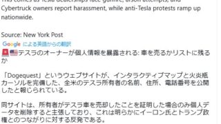 嫌儲 サイト「DOGE QUEST」米国全テスラ所有者の住所氏名を公開し火炎瓶アイコンで表示。今日もテスラ車が燃えまくる。マスク<テロ