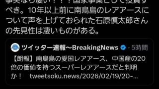 嫌儲 野口健「南鳥島のレアアースは中国産の20倍の価値がある!強い!強いぞ日本は🤩」ツイ速につられる