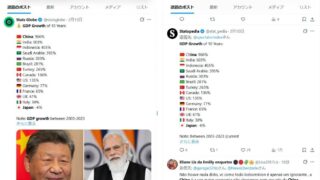 嫌儲 GDP成長率…中国966%、ロシア303%、インド503%、インドネシア455%、日本-6%🤮