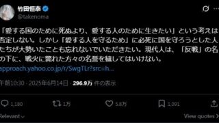 嫌儲 竹田恒泰「現代人は、『反戦』の名の下に、戦火に斃れた方々の名誉を穢してはいけない」→5.8万いいね