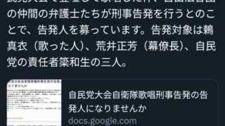 自民党の前で君が代を歌った女性自衛官、自由法曹団の弁護士集団から刑事告発される模様www\(^o^)/オワタ