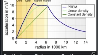 VIP 地球の密度が一定なら穴掘るほど重力強くなるけど実際には一定じゃないから地中のどっかに重力のピークがあるはず