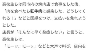 嫌儲 大阪の高校生「焼肉食べたら狂牛病に感染した、どうしてくれる」 狂牛病のふりをして無銭飲食をした高校生を逮捕