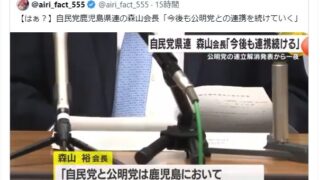 嫌儲 北村晴男「親中は金になるんだよね」→自民党鹿児島県連の森山会長「今後も公明党との連携を続けていく」
