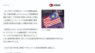 嫌儲 日本人、マレーシアで死刑か?→大麻密輸で日本人の男3人起訴