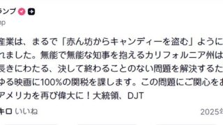 嫌儲 トランプ「ハリウッドは赤ん坊からキャンディーを盗むように外国から搾取されてきた、アメリカ以外の映画に関税100%だ!