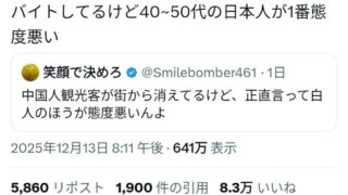 なんG アルバイター「中国人より40~50代の日本人が一番態度悪い」←8万いいね