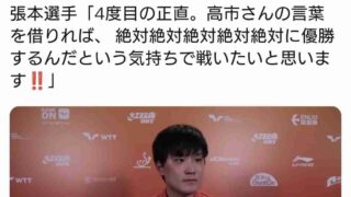 嫌儲 卓球の張本クン、中国で中国人を煽り倒してしまう… 「高市さんの言葉を借りれば絶対に絶対に絶対に優勝するという気持ち!😡」