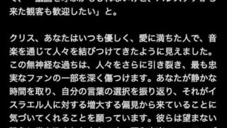嫌儲 コールドプレイ、イスラエル人観客へのブーイングに「イスラエル人もパレスチナ人も同じ人間として歓迎したい」→Xイス人ブチギレ
