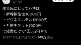 嫌儲 トンキン「関東民は万博行くだけで5万円かかる、ふざけんな」→地方民発狂し炎上www
