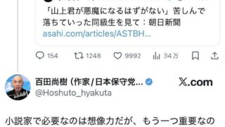 嫌儲 百田尚樹「こいつ、小説家らしいが、まあなんという幼稚なポストをする男か。」有名作家を晒しあげてピシャリ
