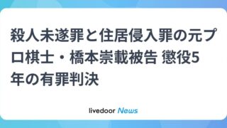 嫌儲 元将棋プロ棋士のハッシーこと橋本崇載に懲役5年の判決