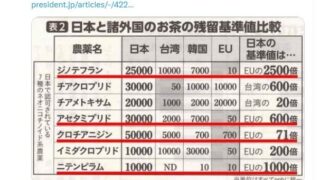 嫌儲 国産茶葉、全てからネオニコを検出🥺…日本の残留農薬基準値はEUの2500倍😲