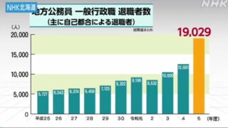 嫌儲 地方公務員、自己都合退職が10年前と比べ「3倍」にㅤ若手がすぐ辞める模様